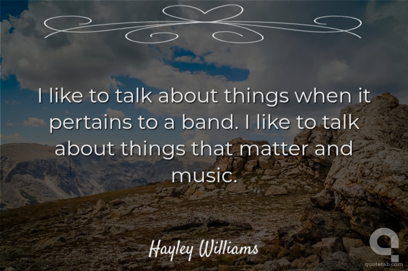 I like to talk about things when it pertains to a band. I like to talk about things that matter and music.