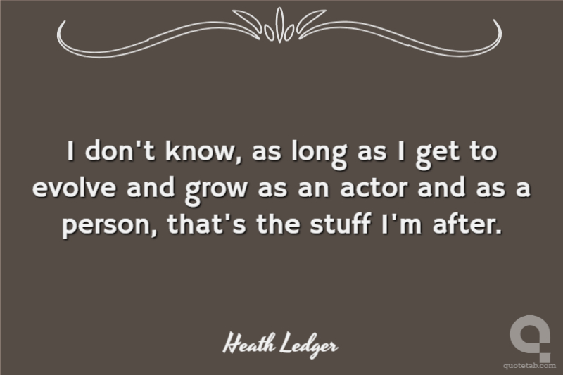I don't know, as long as I get to evolve and grow as an actor and as a person, that's the stuff I'm after.