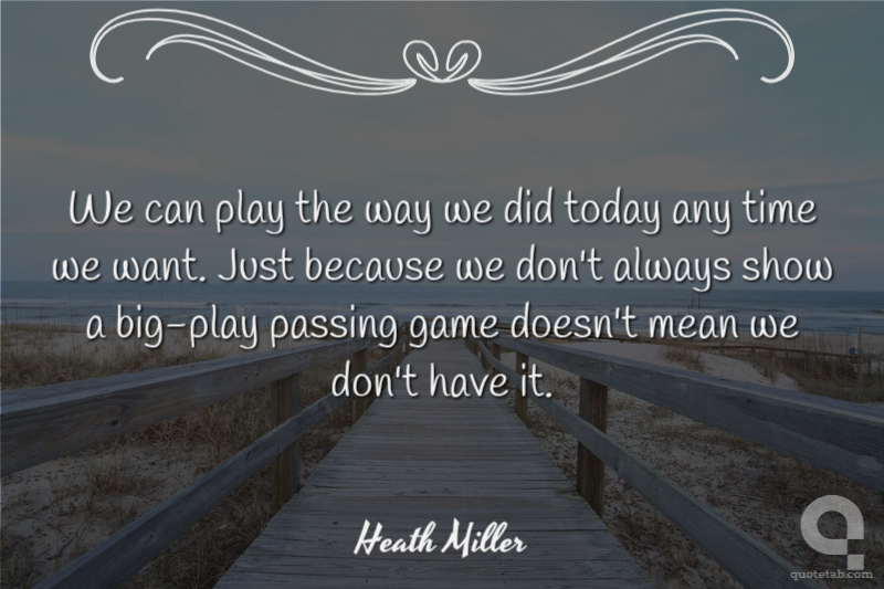 We can play the way we did today any time we want. Just because we don't always show a big-play passing game doesn't mean we don't have it.