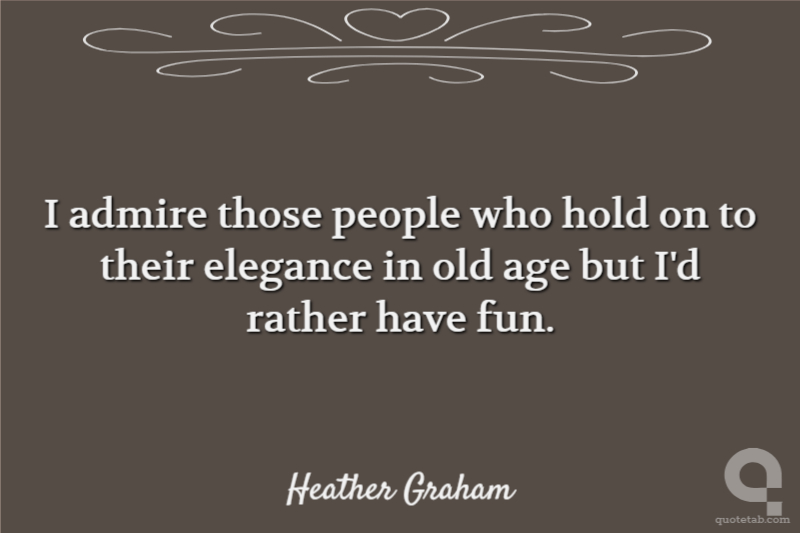 I admire those people who hold on to their elegance in old age but I'd rather have fun.