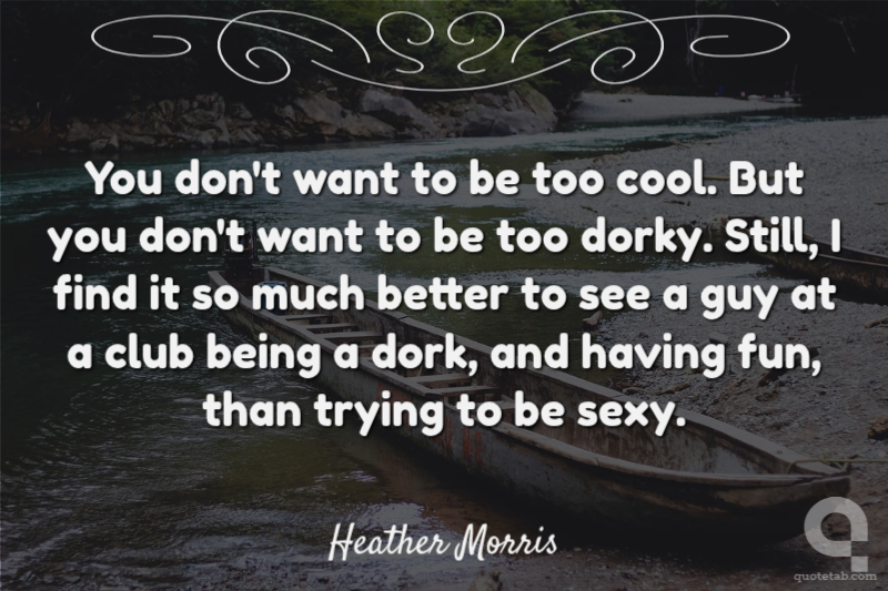 You don't want to be too cool. But you don't want to be too dorky. Still, I find it so much better to see a guy at a club being a dork, and having fun, than trying to be sexy.