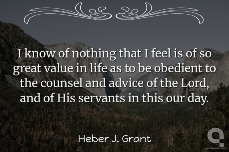 I know of nothing that I feel is of so great value in life as to be obedient to the counsel and advice of the Lord, and of His servants in this our day.