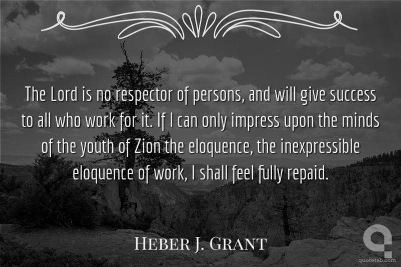 The Lord is no respector of persons, and will give success to all who work for it. If l can only impress upon the minds of the youth of Zion the eloquence, the inexpressible eloquence of work, I shall feel fully repaid.