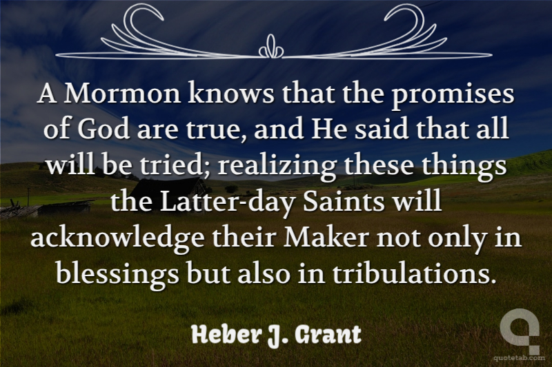A Mormon knows that the promises of God are true, and He said that all will be tried; realizing these things the Latter-day Saints will acknowledge their Maker not only in blessings but also in tribulations.