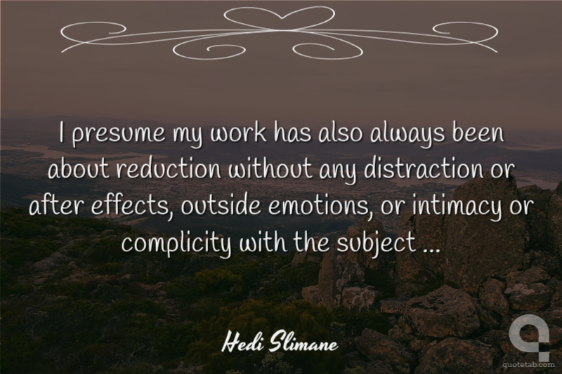 I presume my work has also always been about reduction without any distraction or after effects, outside emotions, or intimacy or complicity with the subject ...