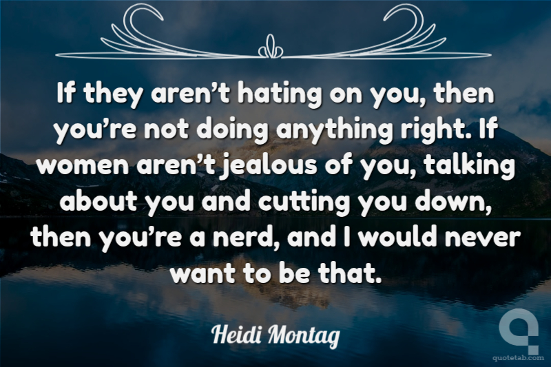 If they aren’t hating on you, then you’re not doing anything right. If women aren’t jealous of you, talking about you and cutting you down, then you’re a nerd, and I would never want to be that.