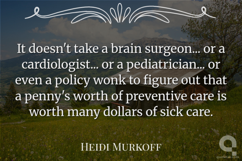 It doesn't take a brain surgeon... or a cardiologist... or a pediatrician... or even a policy wonk to figure out that a penny's worth of preventive care is worth many dollars of sick care.