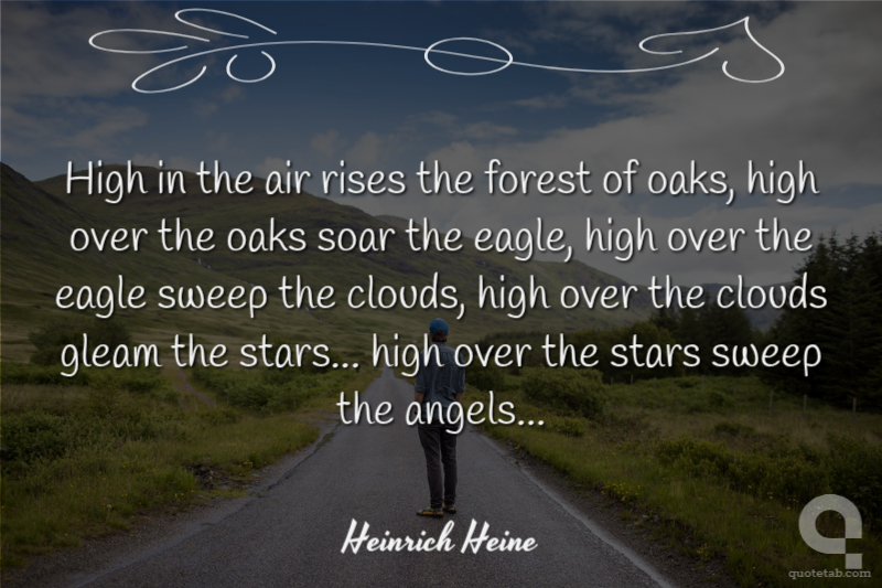 High in the air rises the forest of oaks, high over the oaks soar the eagle, high over the eagle sweep the clouds, high over the clouds gleam the stars... high over the stars sweep the angels...