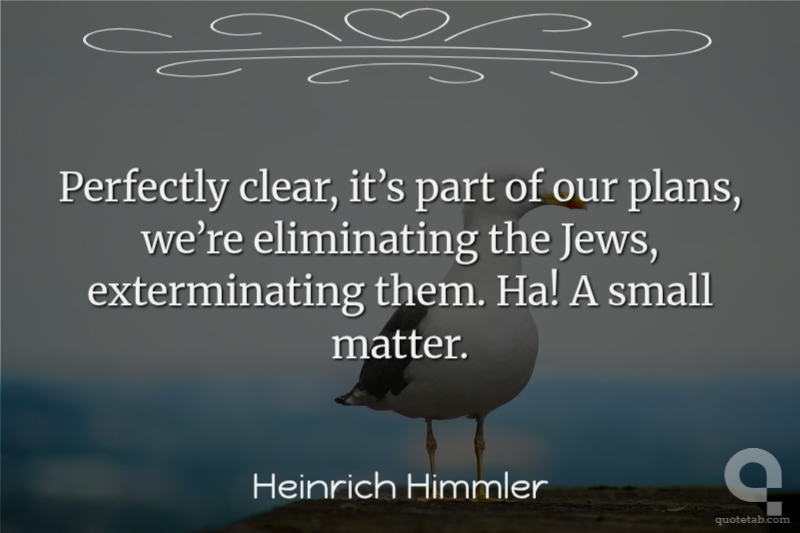 Perfectly clear, it’s part of our plans, we’re eliminating the Jews, exterminating them. Ha! A small matter.