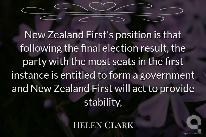 New Zealand First's position is that following the final election result, the party with the most seats in the first instance is entitled to form a government and New Zealand First will act to provide stability,