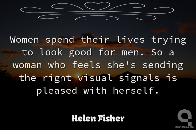 Women spend their lives trying to look good for men. So a woman who feels she's sending the right visual signals is pleased with herself.