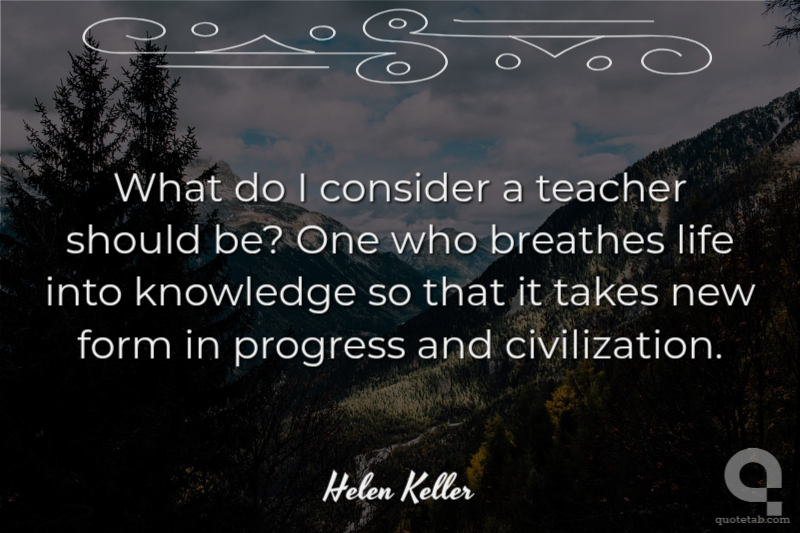 What do I consider a teacher should be? One who breathes life into knowledge so that it takes new form in progress and civilization.