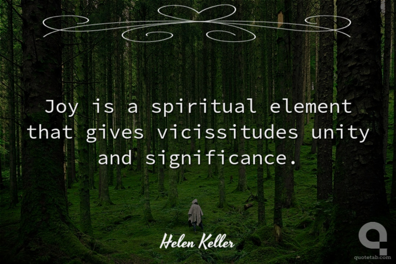 Joy is a spiritual element that gives vicissitudes unity and significance.