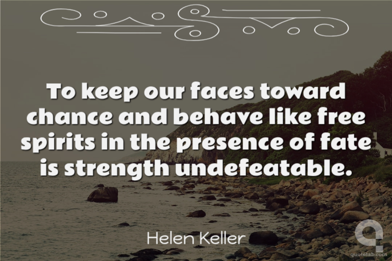 To keep our faces toward chance and behave like free spirits in the presence of fate is strength undefeatable.