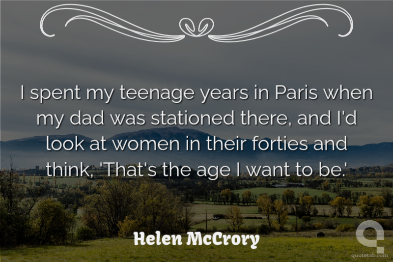 I spent my teenage years in Paris when my dad was stationed there, and I'd look at women in their forties and think, 'That's the age I want to be.'