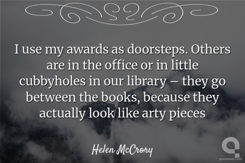 I use my awards as doorsteps. Others are in the office or in little cubbyholes in our library – they go between the books, because they actually look like arty pieces