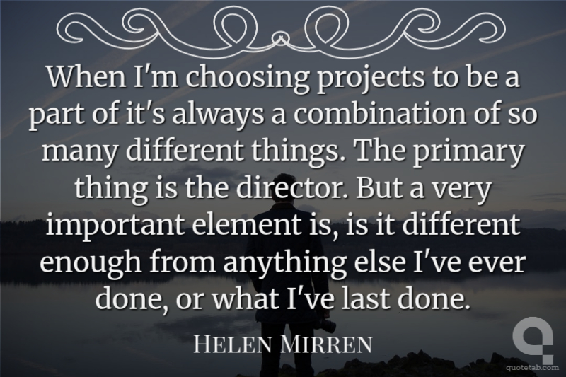 When I'm choosing projects to be a part of it's always a combination of so many different things. The primary thing is the director. But a very important element is, is it different enough from anything else I've ever done, or what I've last done.