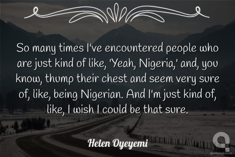 So many times I've encountered people who are just kind of like, 'Yeah, Nigeria,' and, you know, thump their chest and seem very sure of, like, being Nigerian. And I'm just kind of, like, I wish I could be that sure.