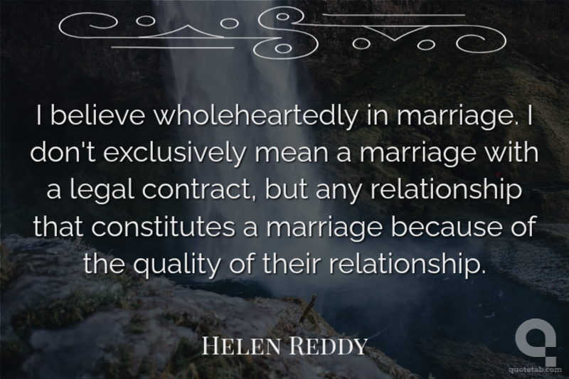 I believe wholeheartedly in marriage. I don't exclusively mean a marriage with a legal contract, but any relationship that constitutes a marriage because of the quality of their relationship.