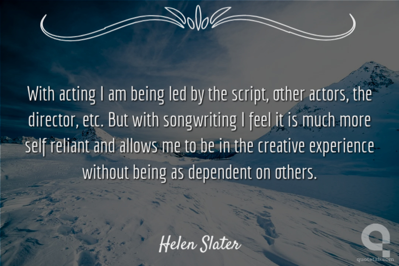 With acting I am being led by the script, other actors, the director, etc. But with songwriting I feel it is much more self reliant and allows me to be in the creative experience without being as dependent on others.