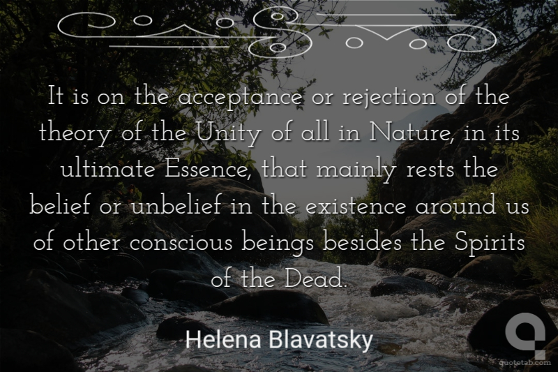 It is on the acceptance or rejection of the theory of the Unity of all in Nature, in its ultimate Essence, that mainly rests the belief or unbelief in the existence around us of other conscious beings besides the Spirits of the Dead.