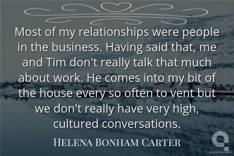 Most of my relationships were people in the business. Having said that, me and Tim don't really talk that much about work. He comes into my bit of the house every so often to vent but we don't really have very high, cultured conversations.