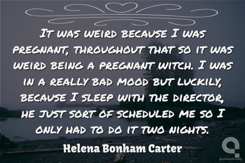 It was weird because I was pregnant, throughout that so it was weird being a pregnant witch. I was in a really bad mood but luckily, because I sleep with the director, he just sort of scheduled me so I only had to do it two nights.