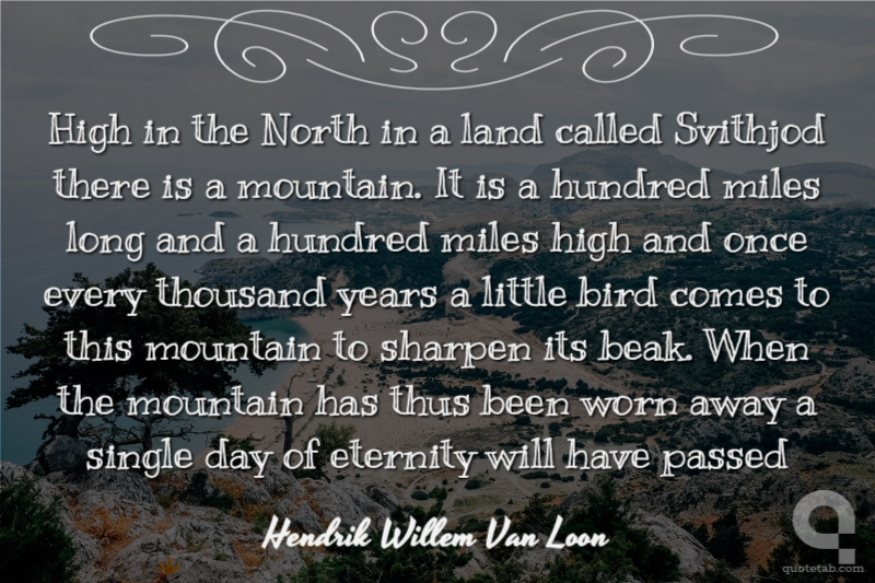 High in the North in a land called Svithjod there is a mountain. It is a hundred miles long and a hundred miles high and once every thousand years a little bird comes to this mountain to sharpen its beak. When the mountain has thus been worn away a single day of eternity will have passed