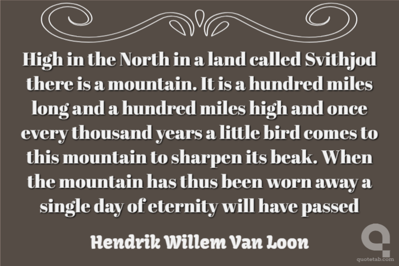 High in the North in a land called Svithjod there is a mountain. It is a hundred miles long and a hundred miles high and once every thousand years a little bird comes to this mountain to sharpen its beak. When the mountain has thus been worn away a single day of eternity will have passed