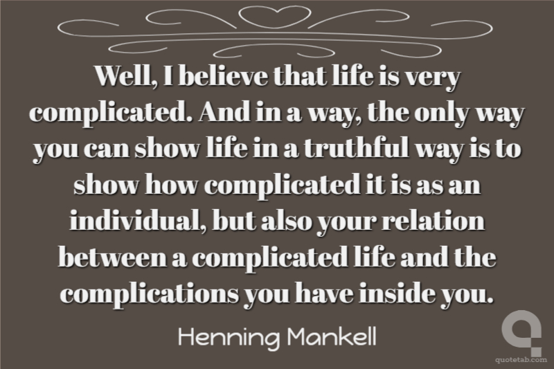 Well, I believe that life is very complicated. And in a way, the only way you can show life in a truthful way is to show how complicated it is as an individual, but also your relation between a complicated life and the complications you have inside you.