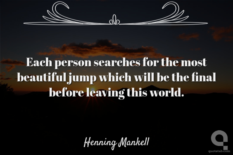 Each person searches for the most beautiful jump which will be the final before leaving this world.