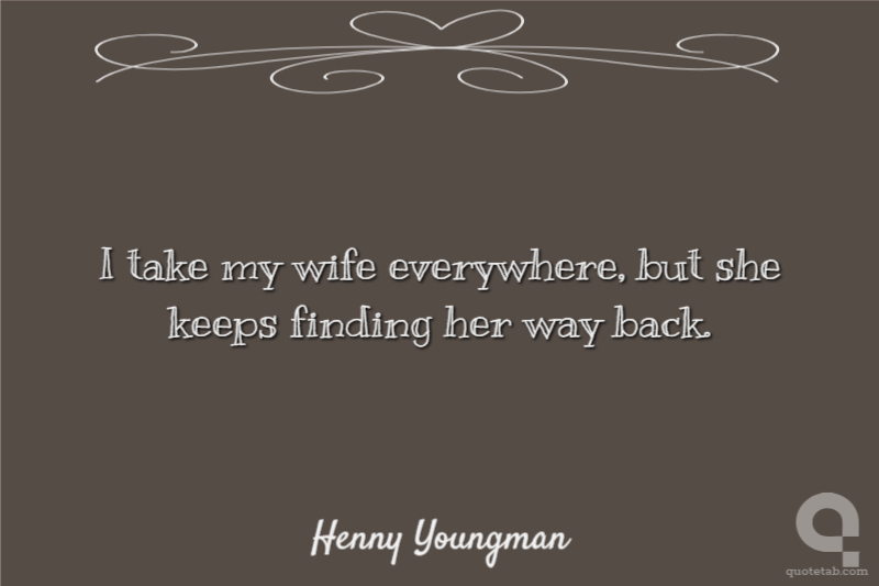 I take my wife everywhere, but she keeps finding her way back.