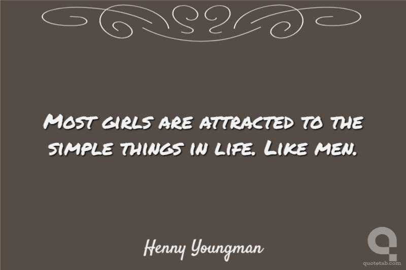 Most girls are attracted to the simple things in life. Like men.
