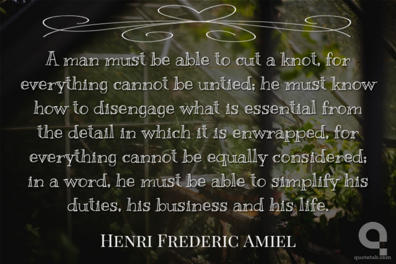 A man must be able to cut a knot, for everything cannot be untied; he must know how to disengage what is essential from the detail in which it is enwrapped, for everything cannot be equally considered; in a word, he must be able to simplify his duties, his business and his life.