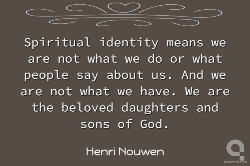 Spiritual identity means we are not what we do or what people say about us. And we are not what we have. We are the beloved daughters and sons of God.