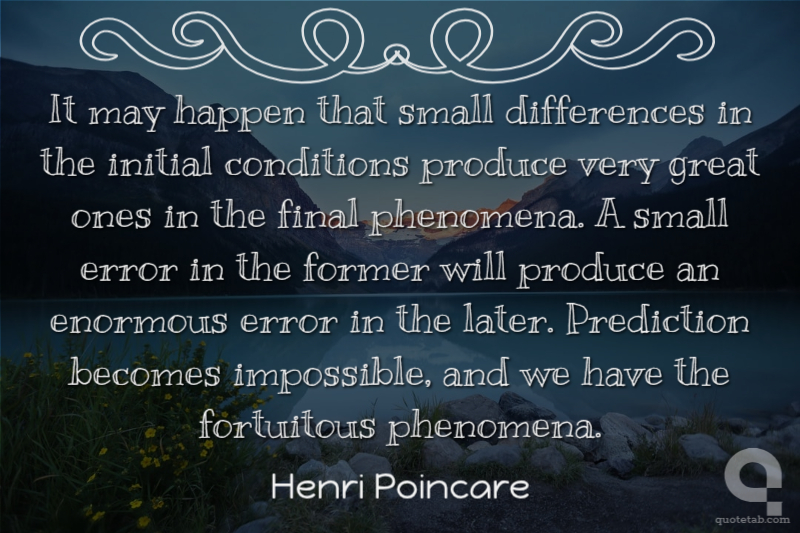 It may happen that small differences in the initial conditions produce very great ones in the final phenomena. A small error in the former will produce an enormous error in the later. Prediction becomes impossible, and we have the fortuitous phenomena.