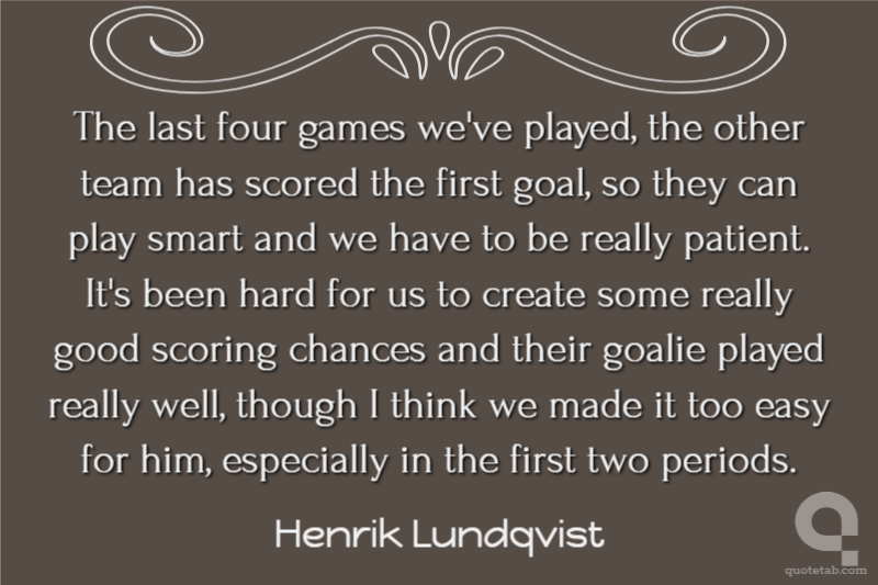 The last four games we've played, the other team has scored the first goal, so they can play smart and we have to be really patient. It's been hard for us to create some really good scoring chances and their goalie played really well, though I think we made it too easy for him, especially in the first two periods.