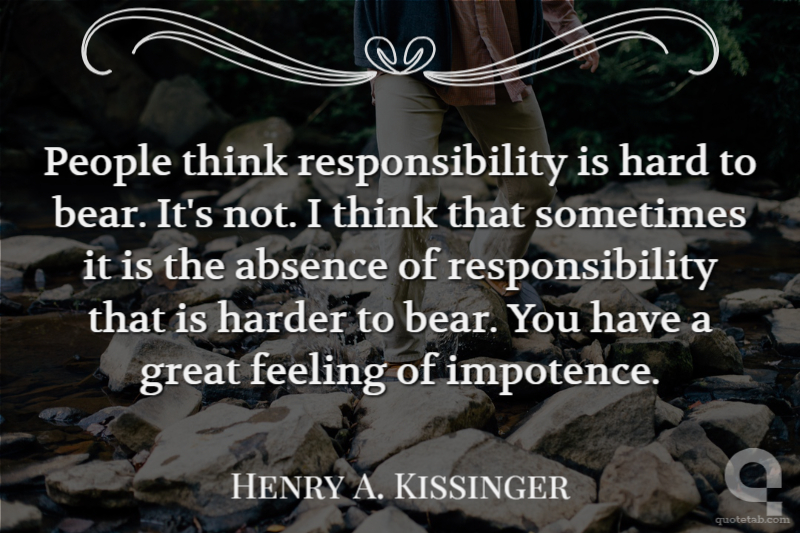 People think responsibility is hard to bear. It's not. I think that sometimes it is the absence of responsibility that is harder to bear. You have a great feeling of impotence.