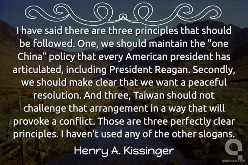 I have said there are three principles that should be followed. One, we should maintain the "one China" policy that every American president has articulated, including President Reagan. Secondly, we should make clear that we want a peaceful resolution. And three, Taiwan should not challenge that arrangement in a way that will provoke a conflict. Those are three perfectly clear principles. I haven't used any of the other slogans.