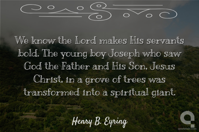 We know the Lord makes His servants bold. The young boy Joseph who saw God the Father and His Son, Jesus Christ, in a grove of trees was transformed into a spiritual giant.