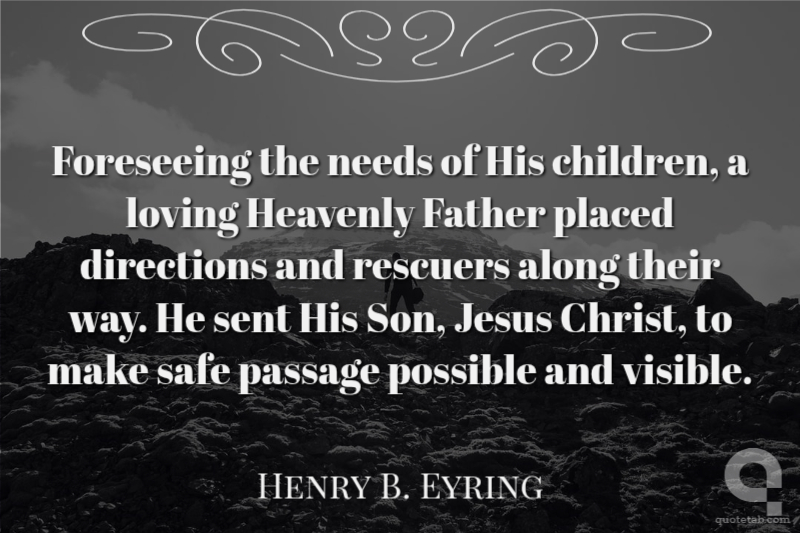 Foreseeing the needs of His children, a loving Heavenly Father placed directions and rescuers along their way. He sent His Son, Jesus Christ, to make safe passage possible and visible.