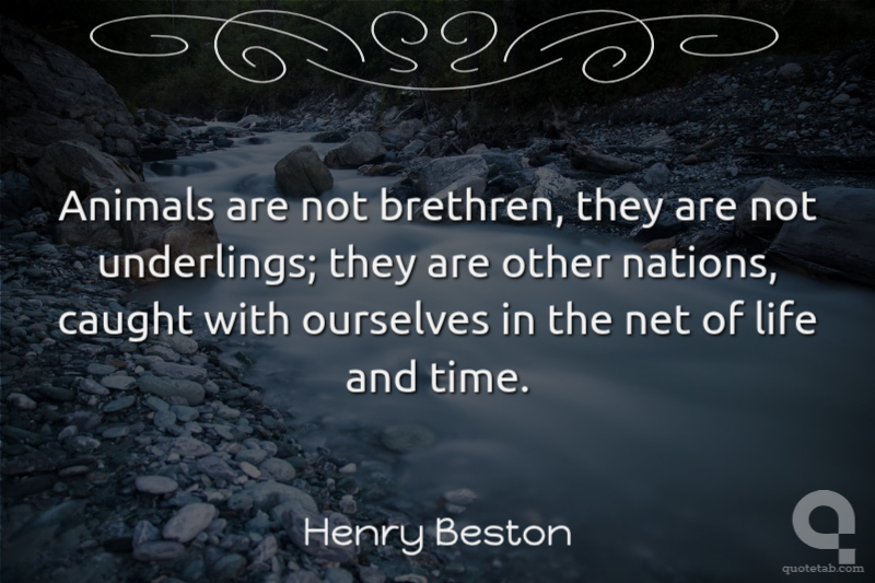 Animals are not brethren, they are not underlings; they are other nations, caught with ourselves in the net of life and time.
