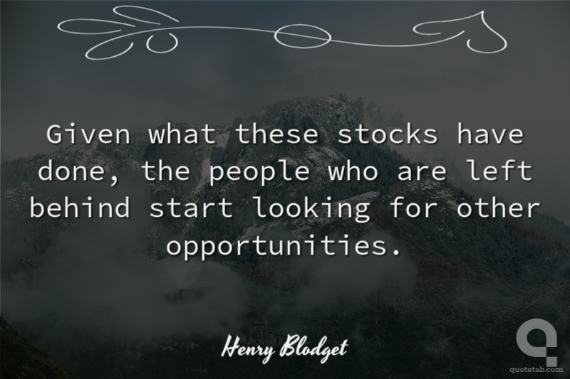 Given what these stocks have done, the people who are left behind start looking for other opportunities.