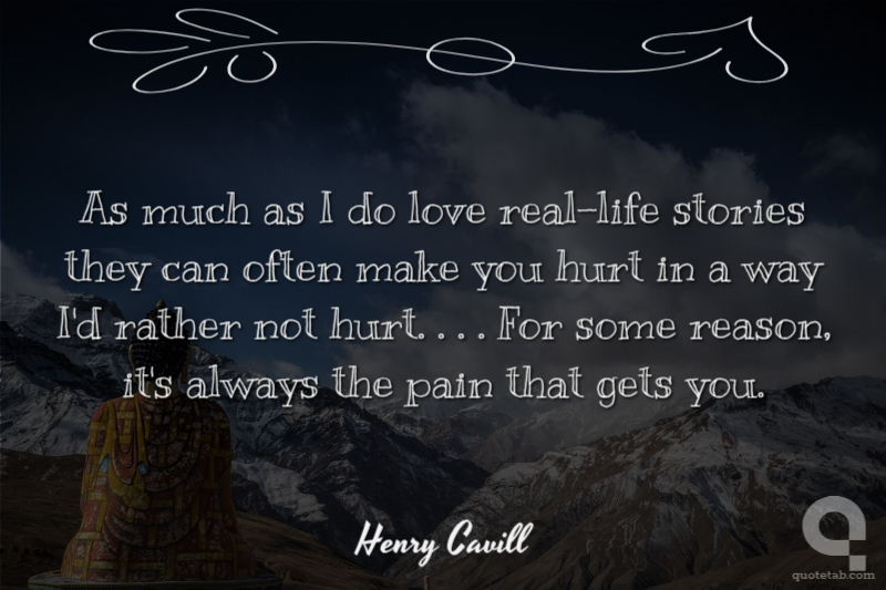 As much as I do love real-life stories they can often make you hurt in a way I'd rather not hurt. . . . For some reason, it's always the pain that gets you.