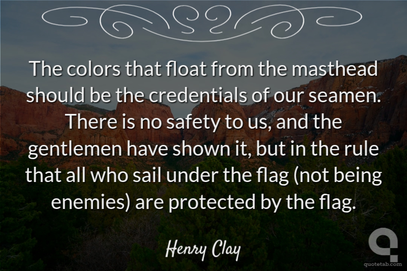 The colors that float from the masthead should be the credentials of our seamen. There is no safety to us, and the gentlemen have shown it, but in the rule that all who sail under the flag (not being enemies) are protected by the flag.