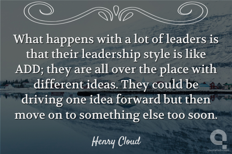What happens with a lot of leaders is that their leadership style is like ADD; they are all over the place with different ideas. They could be driving one idea forward but then move on to something else too soon.