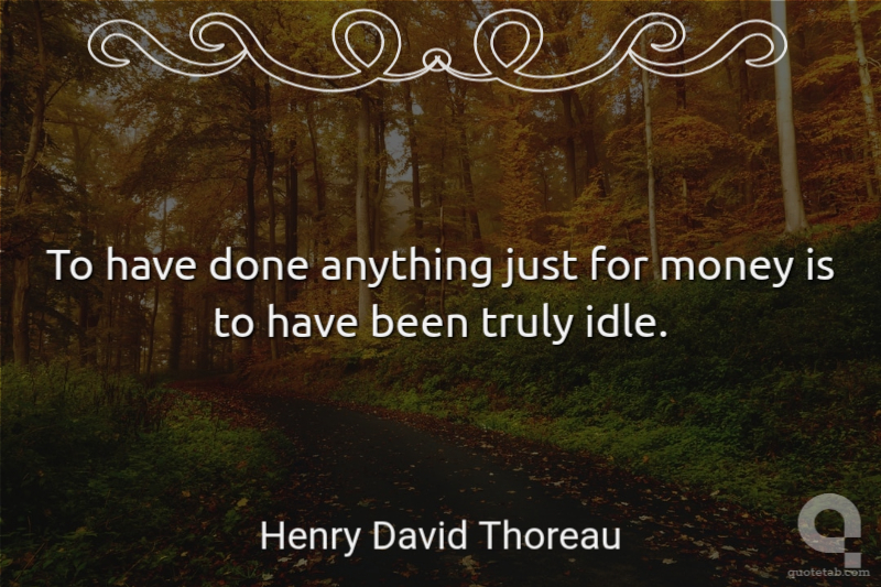 To have done anything just for money is to have been truly idle.