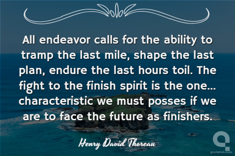 All endeavor calls for the ability to tramp the last mile, shape the last plan, endure the last hours toil. The fight to the finish spirit is the one... characteristic we must posses if we are to face the future as finishers.