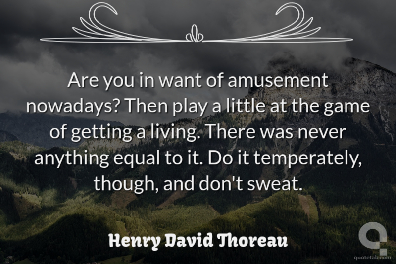 Are you in want of amusement nowadays? Then play a little at the game of getting a living. There was never anything equal to it. Do it temperately, though, and don't sweat.