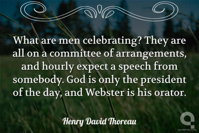 What are men celebrating? They are all on a committee of arrangements, and hourly expect a speech from somebody. God is only the president of the day, and Webster is his orator.